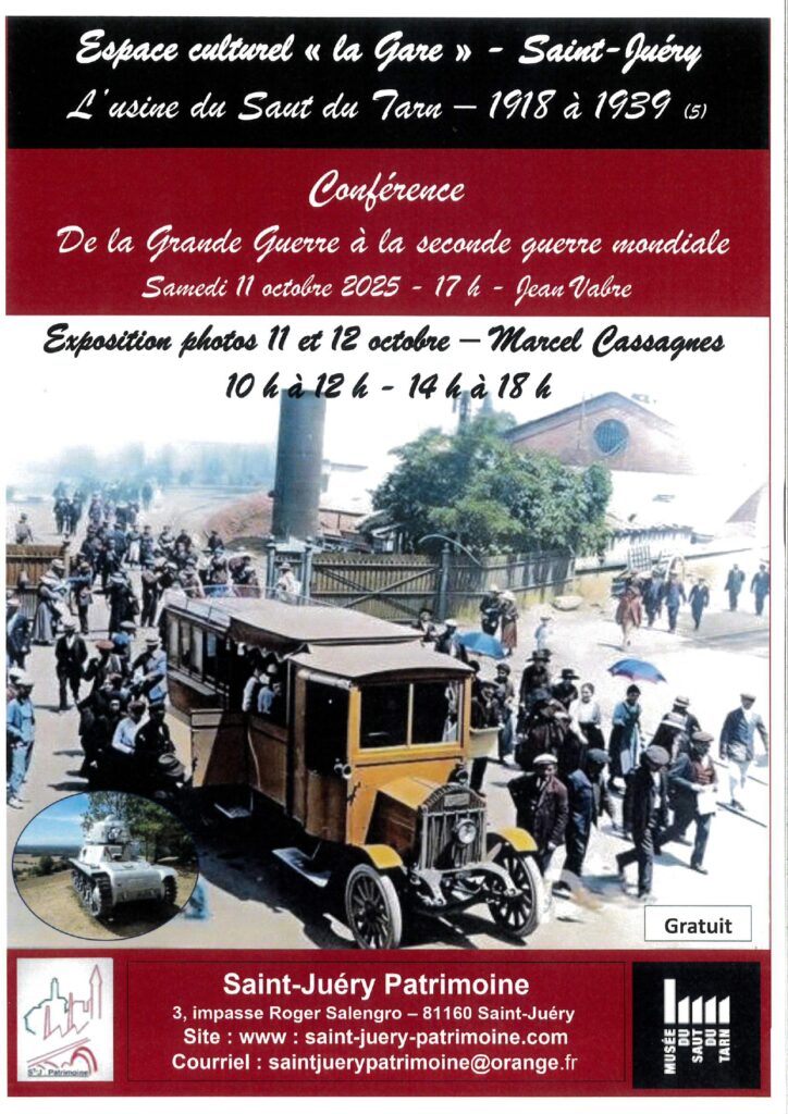 Conférence samedi 11 octobre à 17h par Jean Vabre "de la grande guerre à la seconde guerre mondiale"