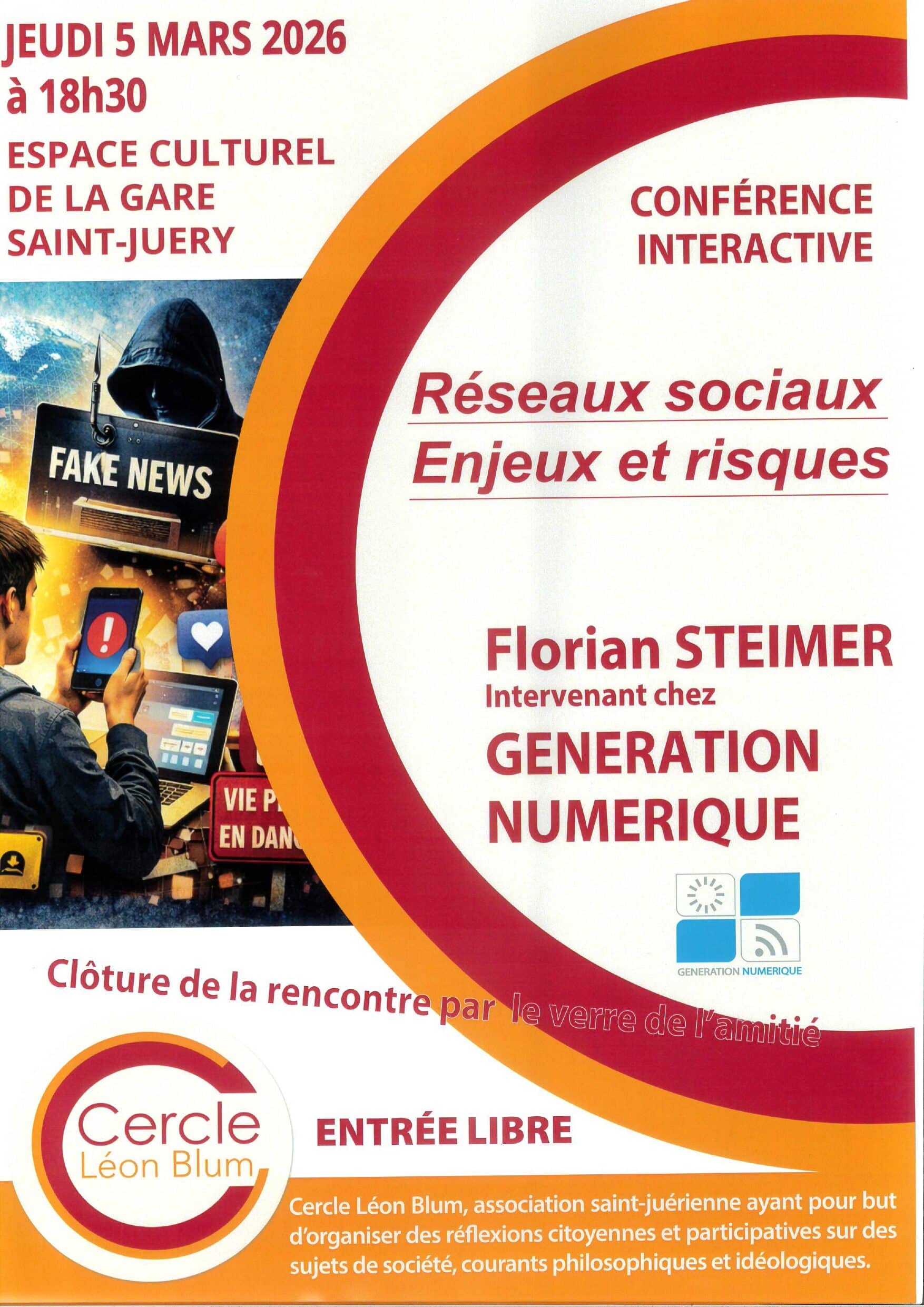 Le Cercle Léon Blum de Saint-Juéry, propose une conférence interactive sur les réseaux sociaux, enjeux et risques.