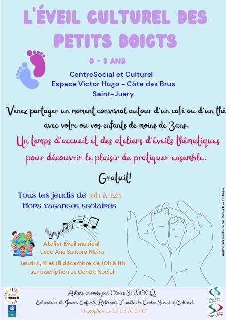 - Éveil culturel des petits doigts tous les jeudis de 10H à 12H (hors vacances scolaires) Éveil des petits doigts