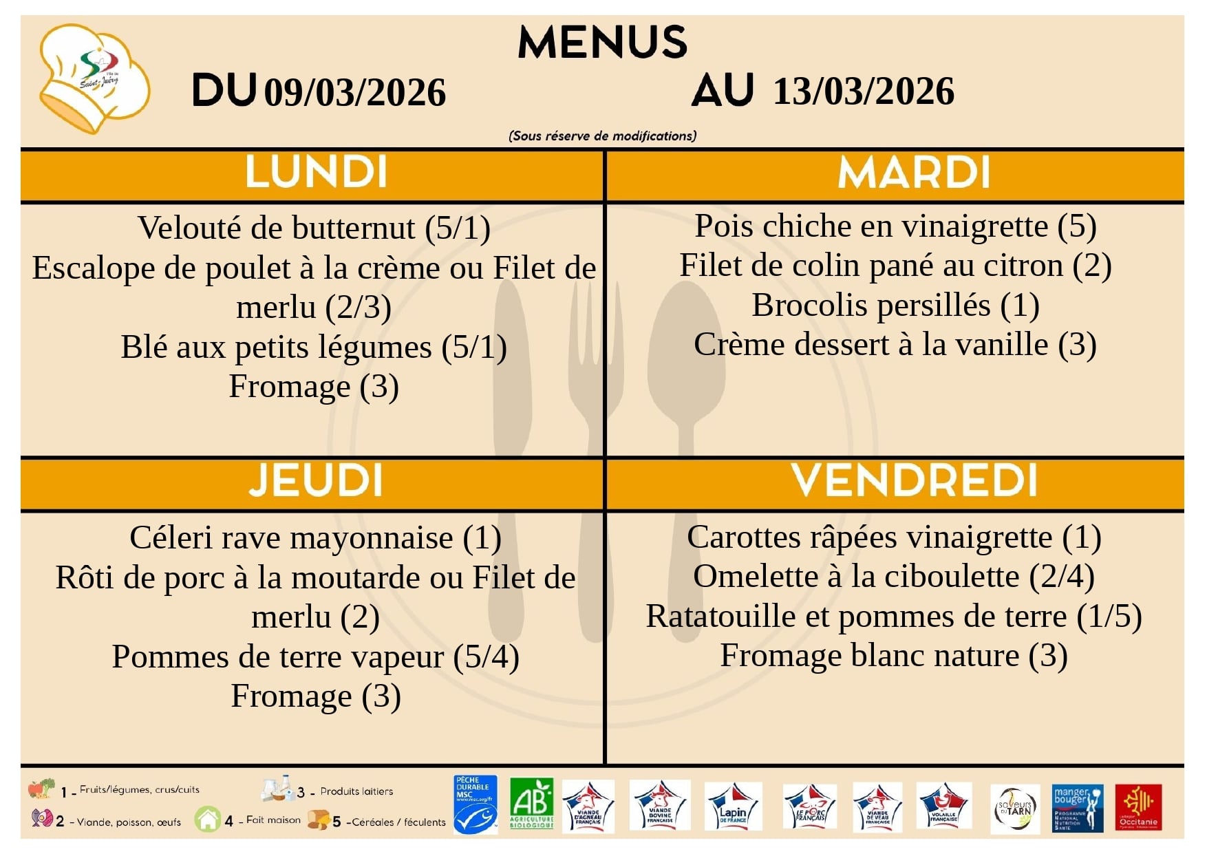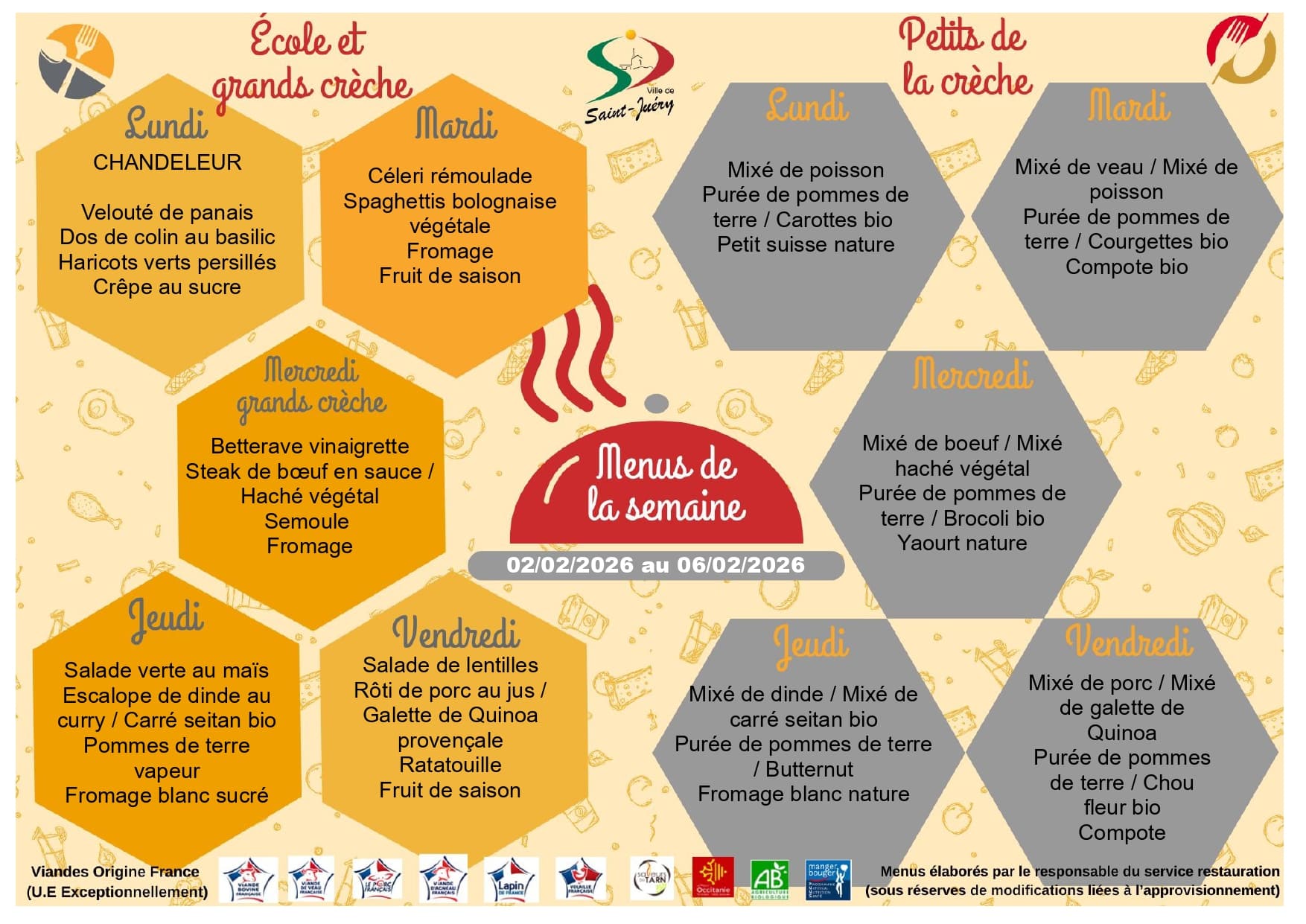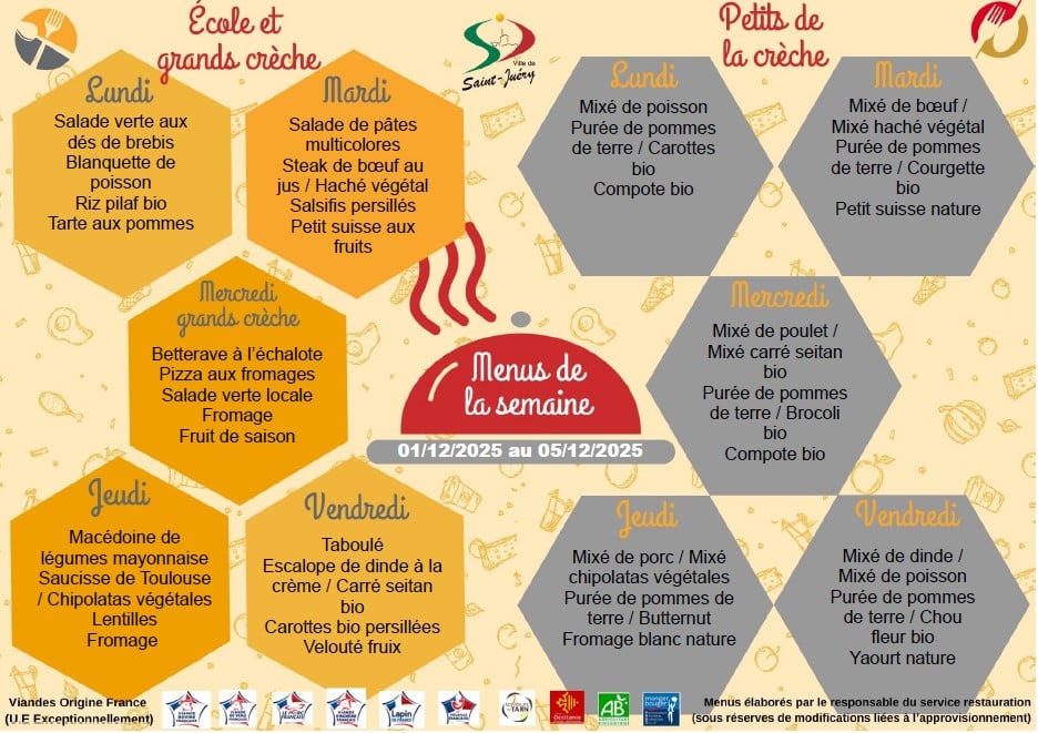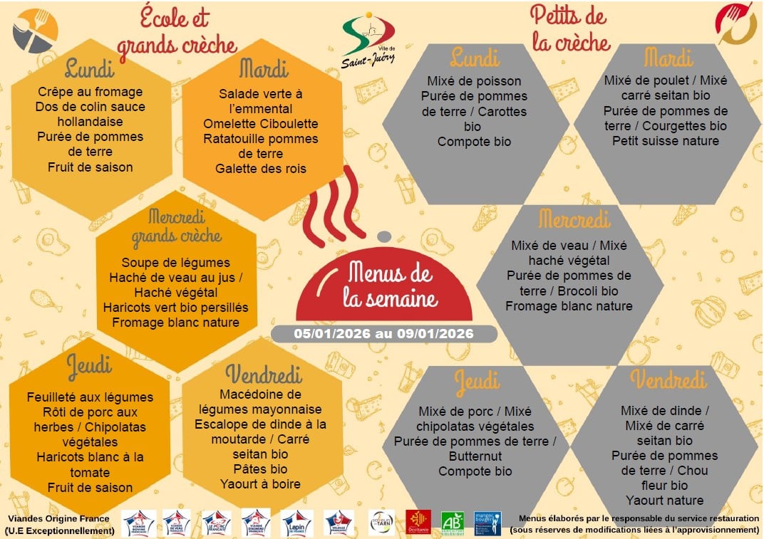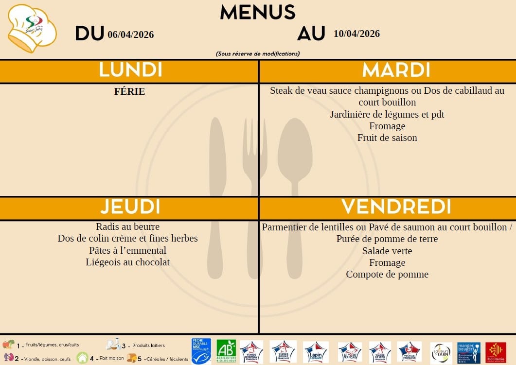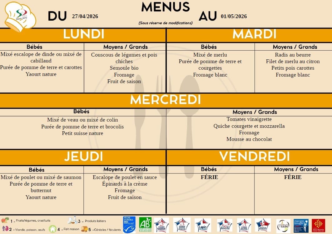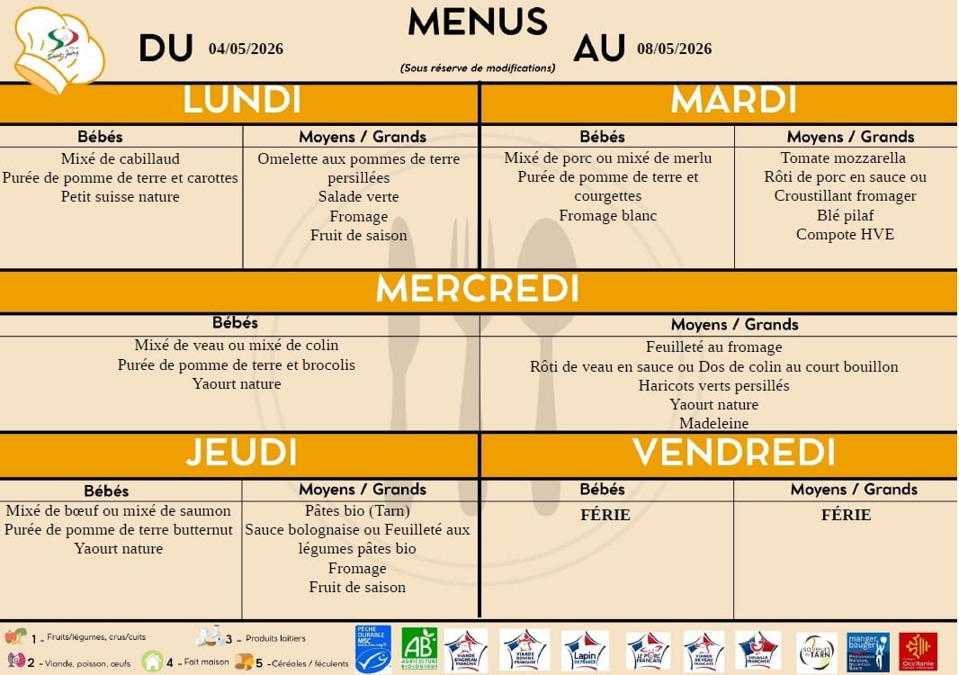 2 groupes scolaires possèdent leur lieu de restauration. La cuisine centrale municipale réalise quotidiennement + de 350 repas en liaison chaude dans les meilleures conditions d’hygiène et de sécurité pour les enfants scolarisés.